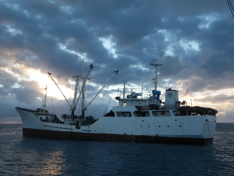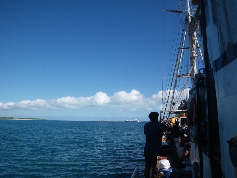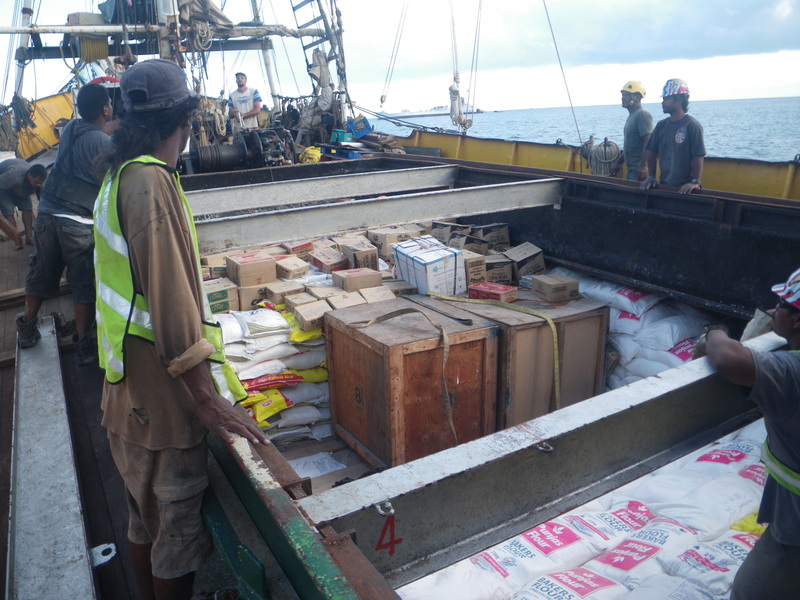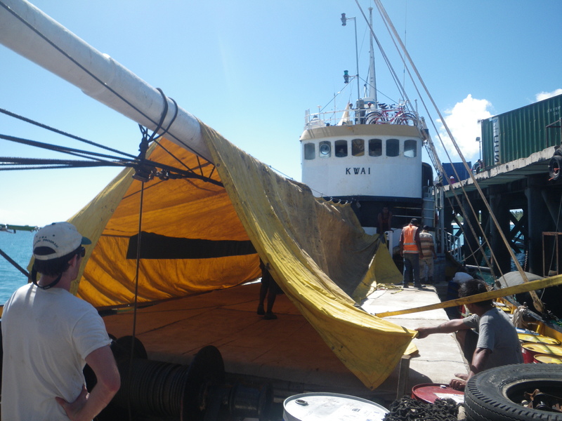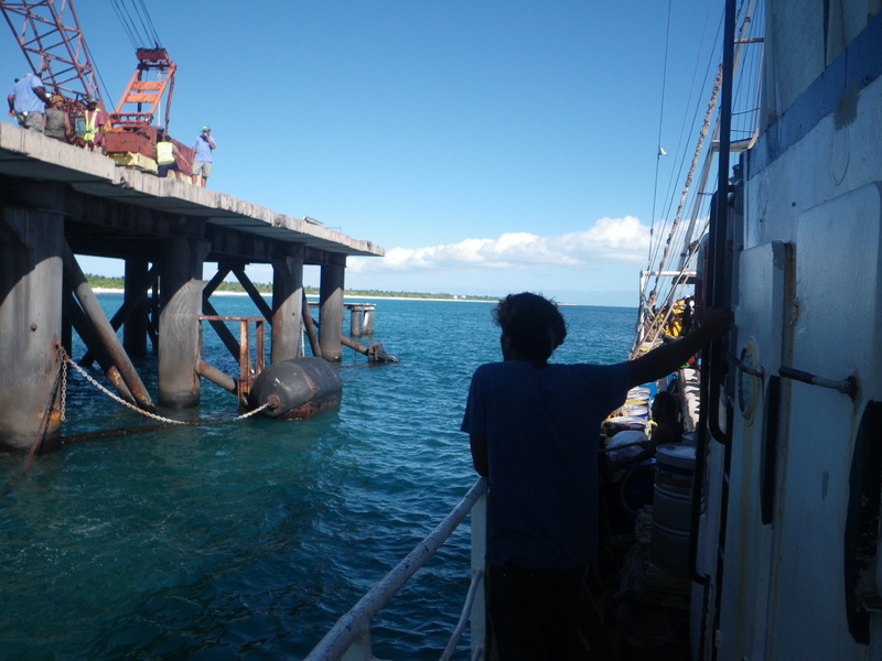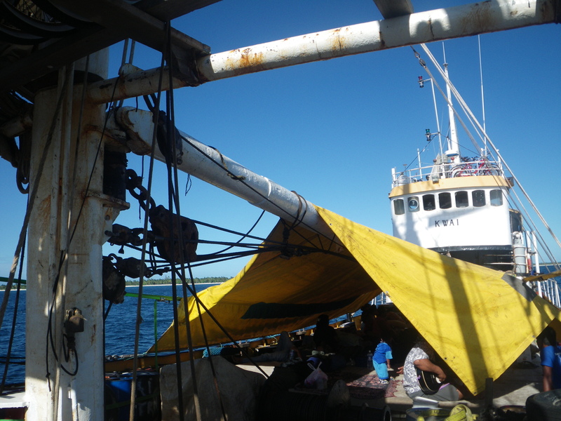 Another freighter serving these islands is the Moa Moa. Unlike the Kwai, it only serves Kiribati, and goes all the way to the capital, Tarawa, in the Gilberts archipelago. The Moa Moa finished loading and left before the Kwai.