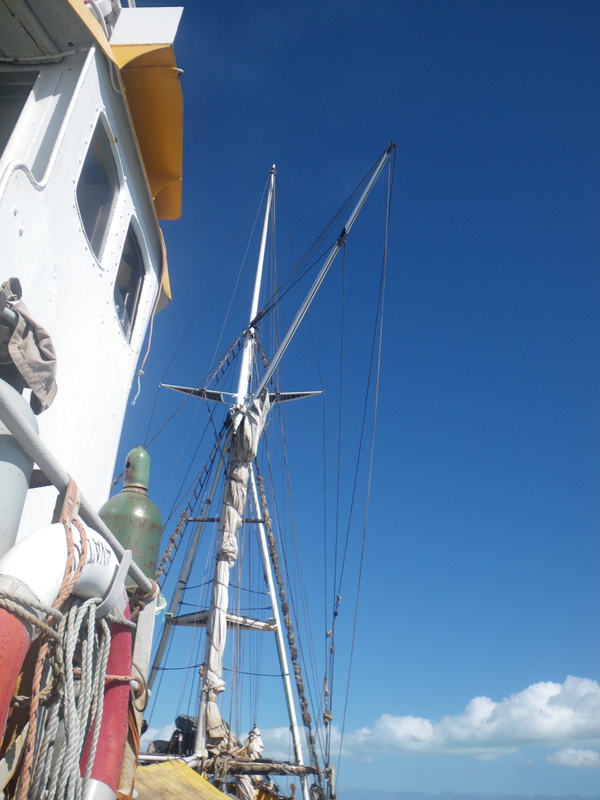 The Kwai is a sailing ship. Depending on the wind, it may go under sail, or under motor.