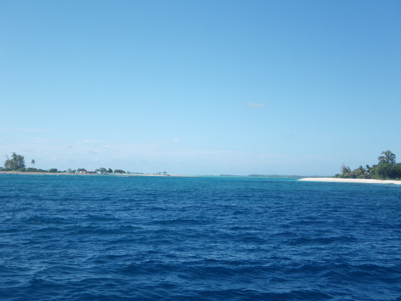 We sailed around the South, then West shores of Fanning until we got to the entrance of the channel.