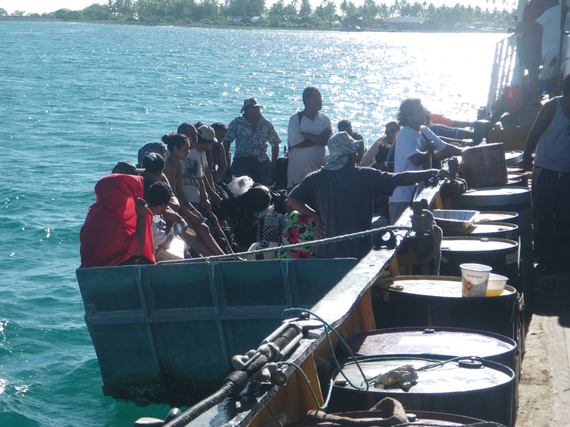 The passengers and many drums of oil went ashore on this ungainly-looking boat.