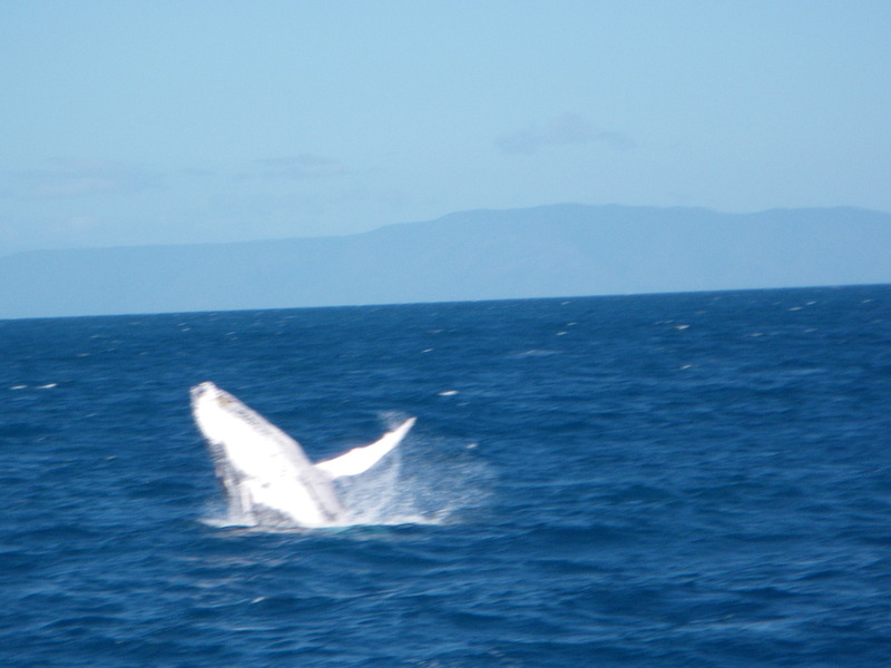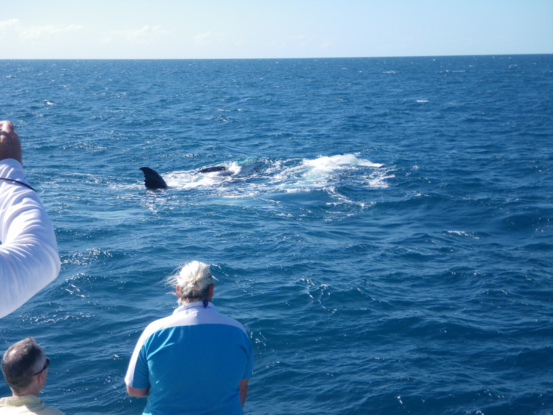 Before we even reached the reef, we came across two humpback whales that were very active. There were breeches, tail and fin displays, and overall, quite a bit of activity.