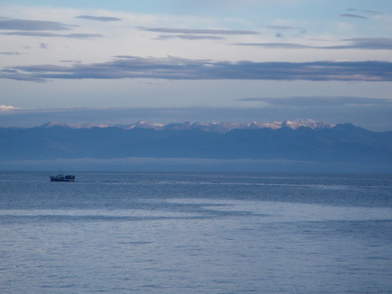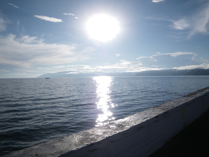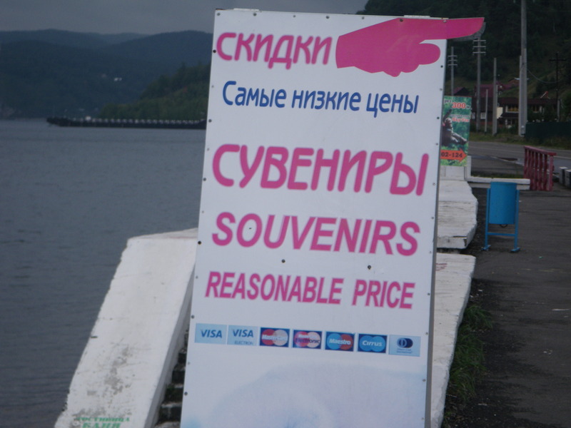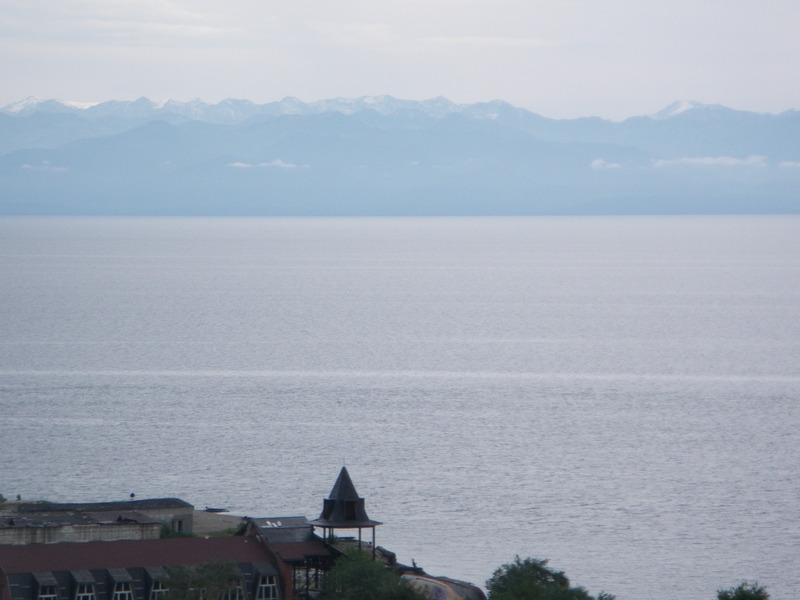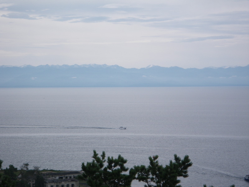 But the best thing about Listvyanka are the views of the lake and the mountains across the lake, especially when I climbed a hill behind the town, but even from the shore. Because the weather was rather unstable as I was there, some of the mountains had fresh snow. I was told this was rather worse weather than usual for August.