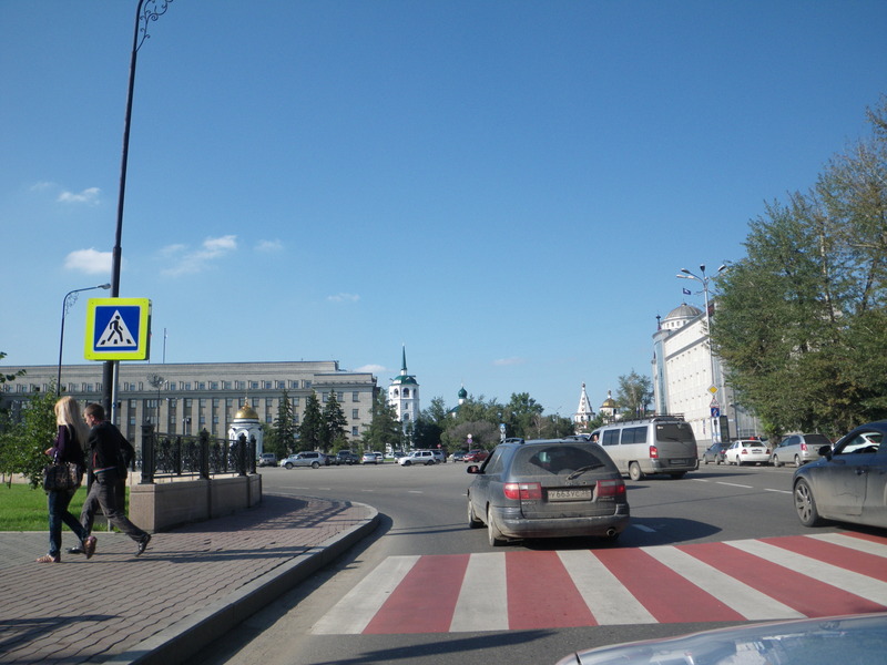 Irkutsk has a shopping street, churches, and classical-looking buildings. It even has streetcars (trams), and really, it looks like a European city. This is a little odd because Irkutsk is about as close to the middle of Asia as I am going to get on this trip.