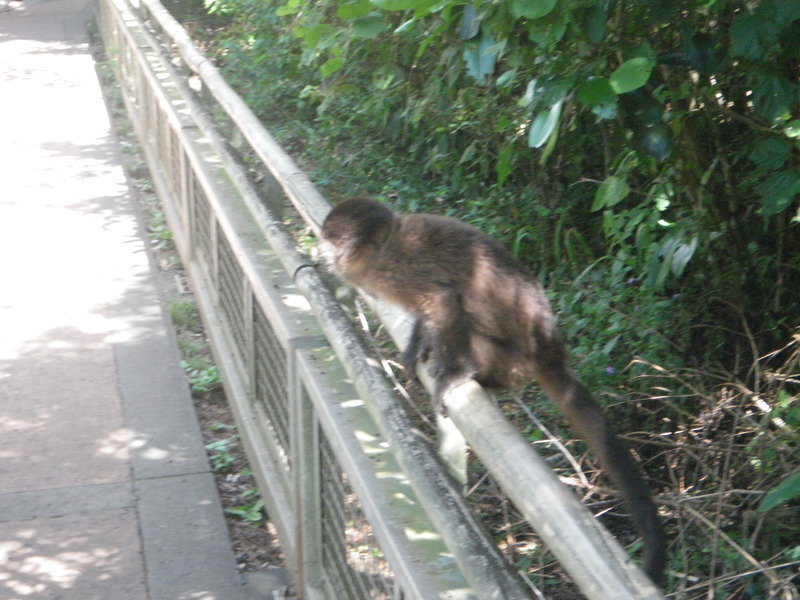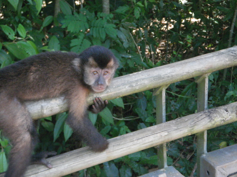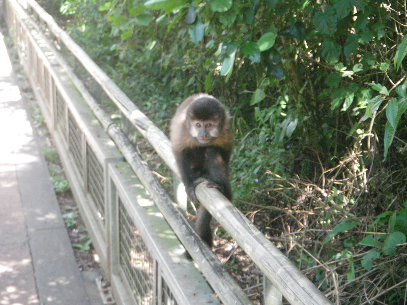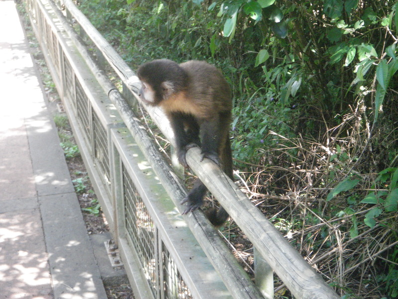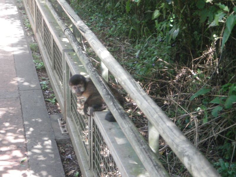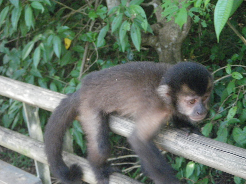 The capuchin monkeys are also quite entertaining, and also known for trying to steal food from visitors. They are small, perhaps 40cm long (plus tail), and generally unafraid. Unlike the coati, they move fast and are very good at climbing trees and other structures.