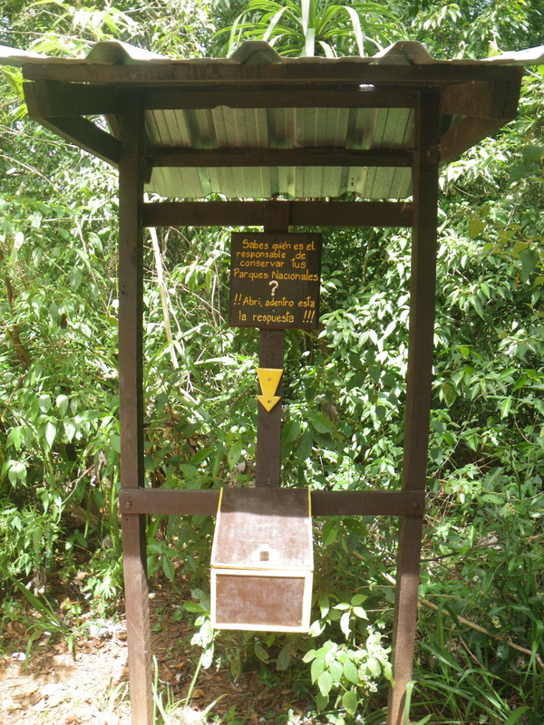 I found Iguazu national park quite well done. They have a little railroad to get people around, lots of walkways, and a few nice touches. For example, the sign in this pictures asks "Do you know who is responsible for the conservation of your national park? Open, the answer is inside!!!"