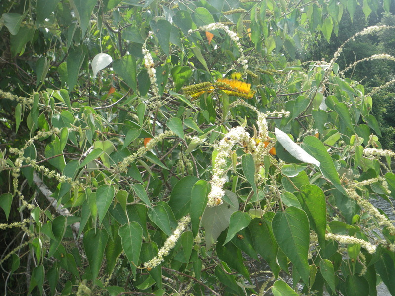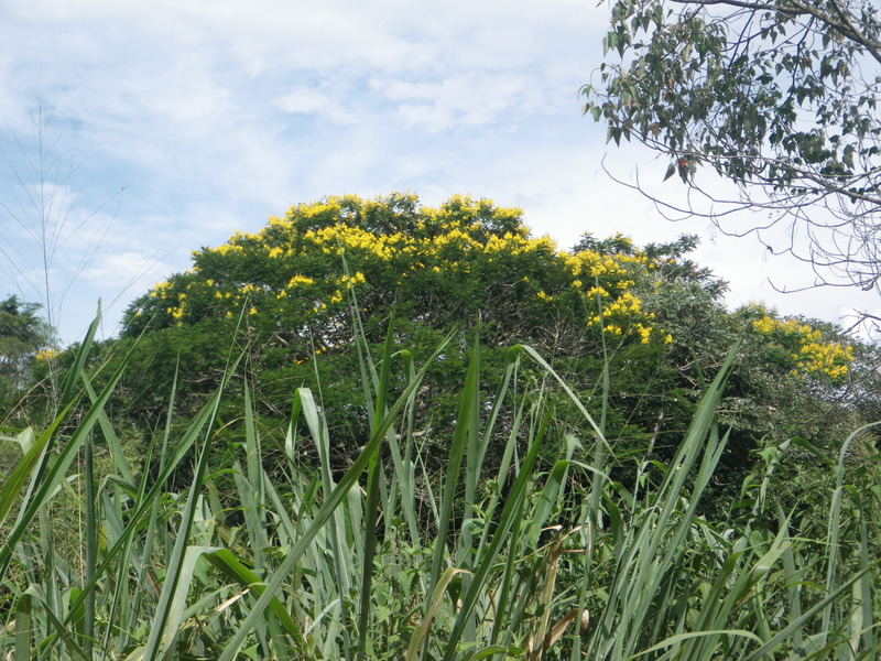 I will not include pictures of trees, but to give an idea of the variety, the signs I saw showed trees in the families Tiliaceae, Bignonaceae, Arecaceae, Meliaceae, Sapotaceae, Mirtaceae, Borraginaceae, Sapindaceae, Moraceae, Rubiaceae, Caricaceae, and Proteaceae. I also saw some Bromeliads. And by far the most labeled trees were in the family Fabaceae, the same family as peanuts, beans, and acacias.