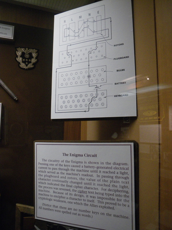 As the museum guide told us, the systems that successfully provide security aren't quite as interesting as the systems that fail to provide security. The part I most enjoyed about the museum was the Enigma machines, which were used by Germany during World War II to encrypt their communications, and which the Allied forces very frequently broke, thus gaining valuable intelligence.