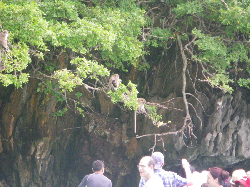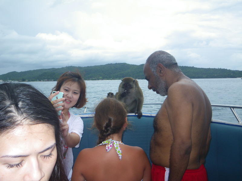 When they swim to the boats, the monkeys are fed bananas, which of course encourages them to swim to the boats. The tourists (that are not scared of the monkeys) enjoy the photo opportunity, So this sounds like a good deal for everyone.