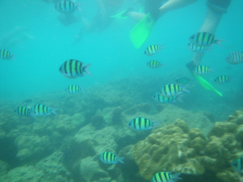 Other than to see the monkeys and for lunch, the boat did not stop long at Phi-Phi Don. Instead, we went snorkeling just offshore. The fish were abundant. Many resembled similar fish I have seen in Hawaii, and others did not.