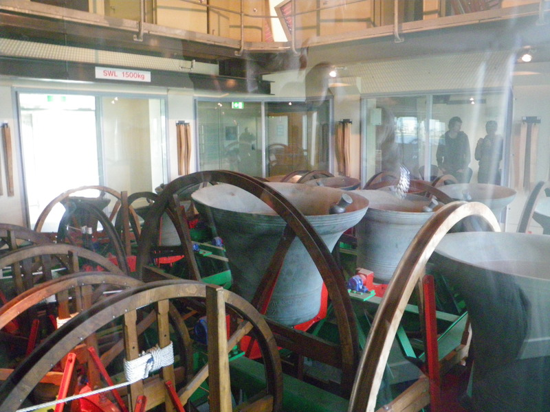 In change ringing, many bells, each with a different tone, are rung in a well-defined sequence. The sequence changes over time, hence the name of change ringing. It makes for a somewhat different sound than any other kind of bell ringing, and change ringers are very proud of their art. One sign in the bell tower proclaims it to be "the world's largest musical instrument". Should you be interested in sponsorship, the bell tower is looking for a donor to contribute a new bell that will weigh more than 2 tons (only 12 of the 18 bells are from England, the rest are new).
