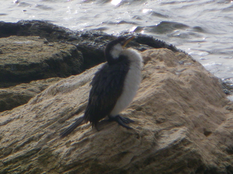 I also saw a number of birds, including a native black and white magpie, seabirds, and another bird I did not identify. The red spot on the throat is part of the bird in the last picture. Except perhaps in zoos, I don't believe I have seen any of these birds before.