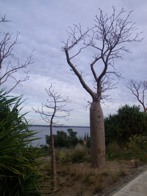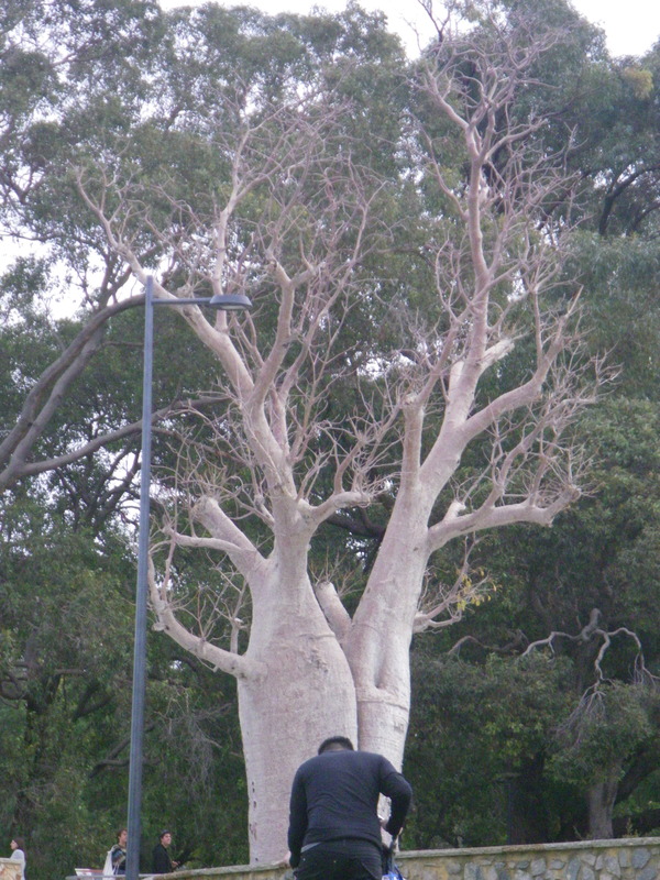 King's park includes a nice botanical garden (free entrance -- it is part of the park) with good exhibits of native plants of Southwest Australia all the way to the Kimberleys (which seem rather North to me). Famous in the Kimberleys is the Boab tree (Adansonia gregorii, or Jumulu), named after and distantly related to the South African Baobab tree. Millions of years ago, Southern Africa, Madagascar, and Australia were all joined together in a supercontinent named Gondwana. The Boab drops its leaves during the dry season, which is unusual for Australian plants.