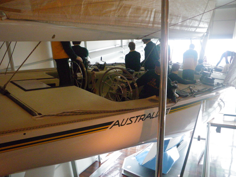 In Fremantle yesterday it was rainy, so I just visited the Maritime museum. It is a very nice museum, and it even allowed pictures! This is the America's cup boat "Australia II", with its winged keel (the boat is real, the crew is not).