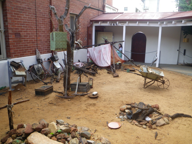 The Perth mint, where coins are made and bullion is cast into bars, is a major tourist attraction. The best part was watching them pour molten gold into a shape that made it into a gold bar. Unfortunately, they would not allow pictures of any of the gold. Instead, you get a picture of a recreation of a gold-digger's camp.