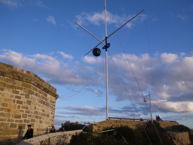 The round house has some nice views. Outside is a cannon that fires promptly at 1pm, and a big black shape on a pole that is raised or lowered to signal to the mariners anchored offshore that the cannon is about the fire. I didn't see either, but that is what the signs say, and the cannon did show signs of having been used recently.