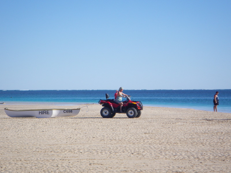 In spite of the motorboats and vehicle, overall, the beach is very beautiful and quiet. In very shallow water near the beach, I saw some big silvery fish that reminded me of the Ulua in Hawaii.