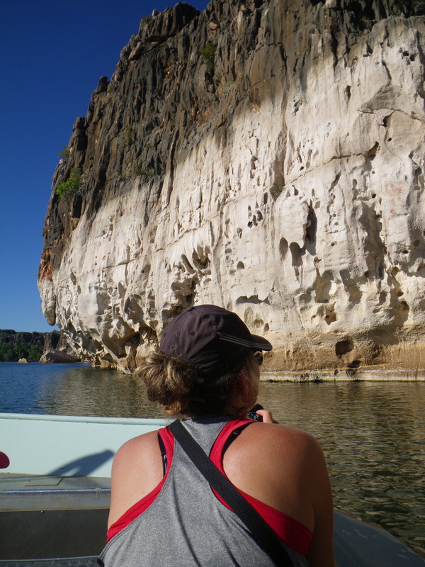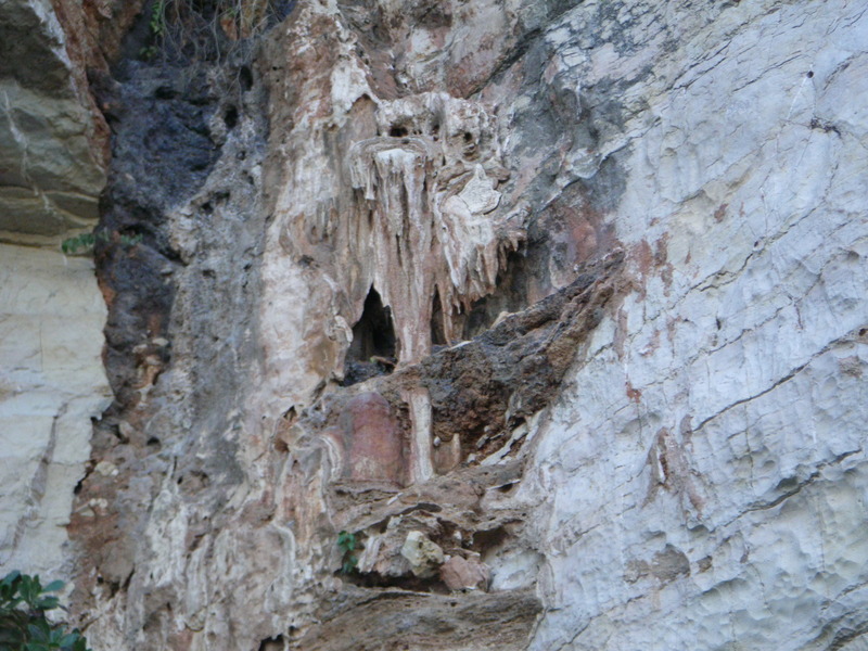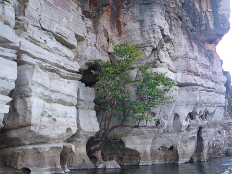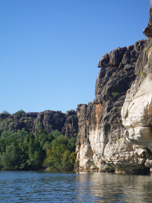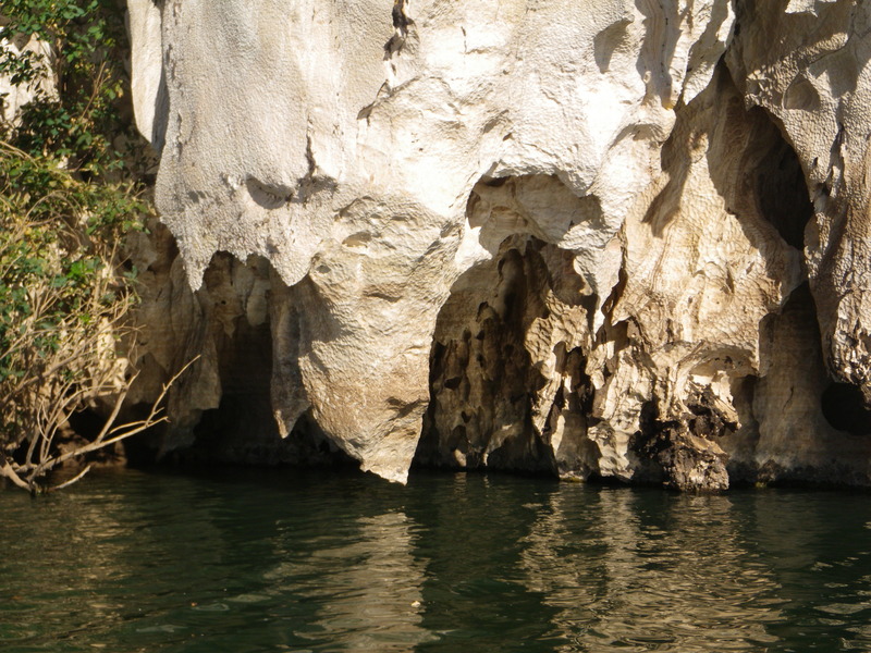 Besides the crocodiles, the most interesting part of this area are the cliffs. Because this is the dry season, the river level is low. When the river level is high, it leaves a white water mark on the limestone cliffs, about 16m above the current level.