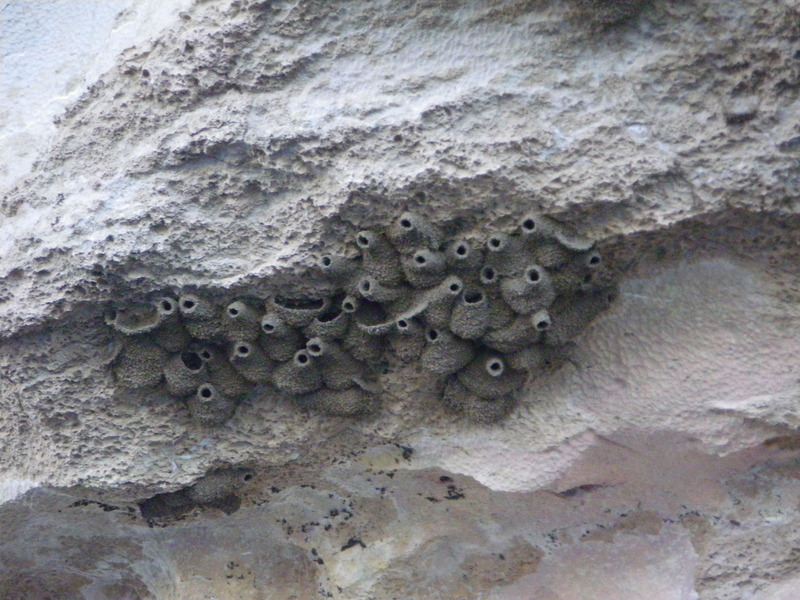 The limestone cliffs, while small, have interesting shapes, and there are many, many birds, many more than I was able to take pictures of. The birds that build mud nests on the underside of cliffs are Fairy Martins.