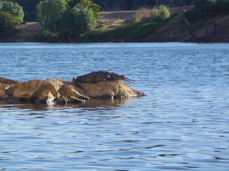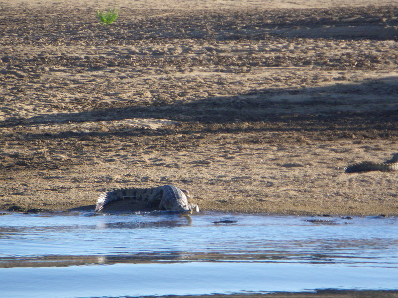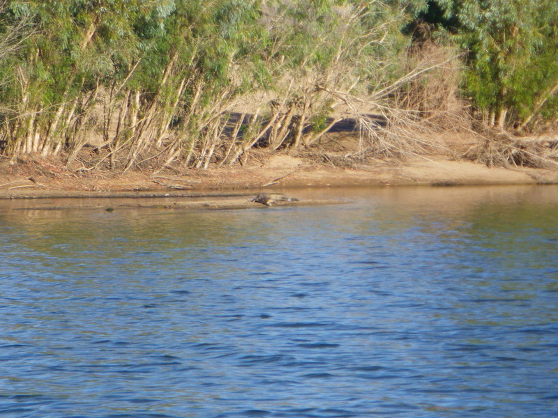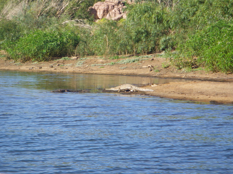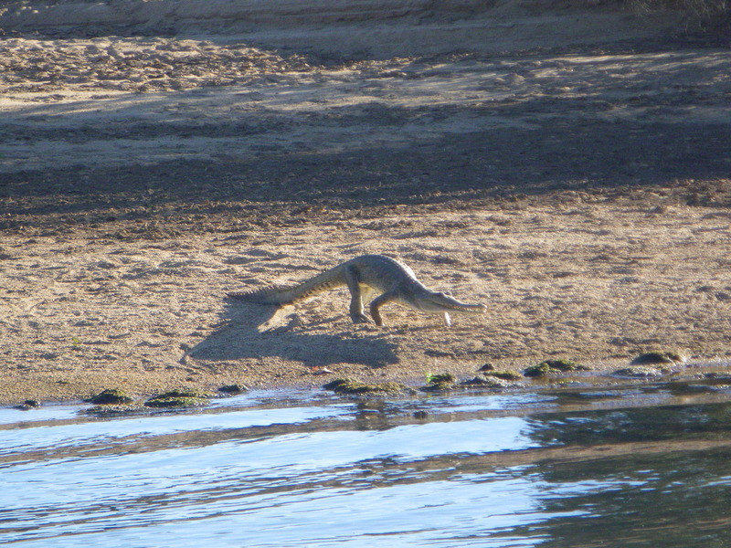The crocodile in the last picture is arching his back because he feels threatened by our boat, and is trying to look bigger than he is.