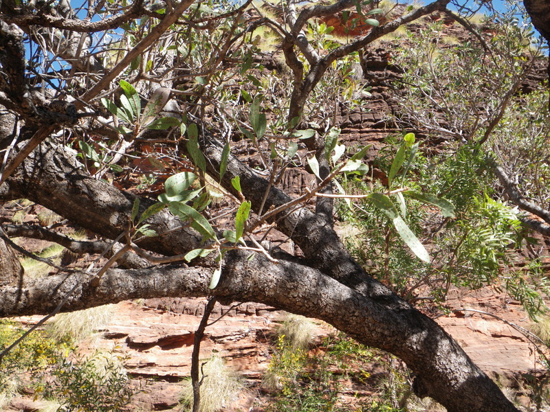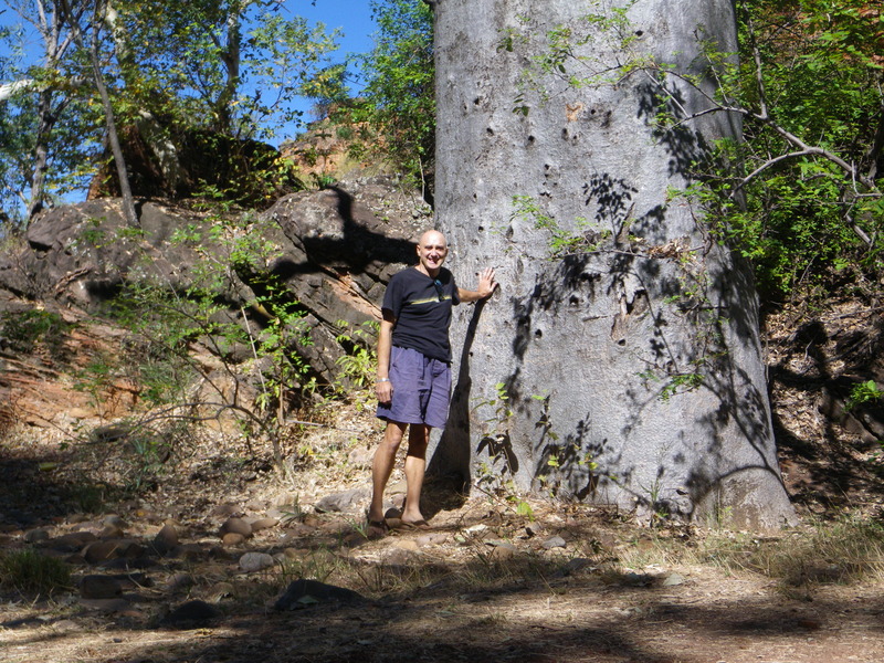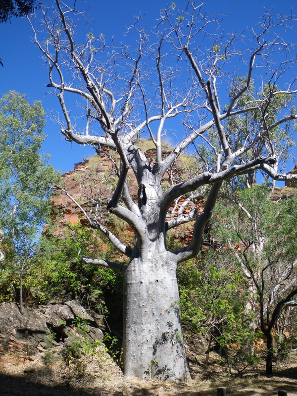 The road to the park goes up a little valley between steep little sandstone hills. At the end of the road is a nice boab.