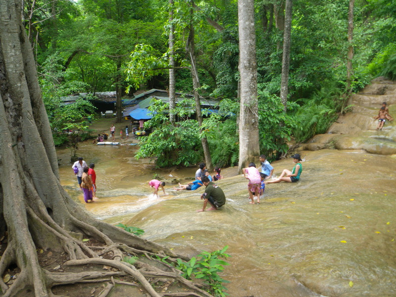 Finally, at the end of the line is Nam Tok (waterfall) Sai Nok Noi, the small Sai Nok waterfall (the larger one is several kilometers away, in Sai Nok national park, and I did not visit it). Sai Nok Noi is a popular place for swimming and watersliding.
