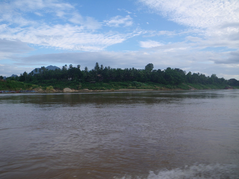 The boat was a long, narrow river boat with a diesel engine near the back, and the driver sitting at the front. At one point we stopped to refuel, and the driver asked for a 200,000 Kip ($25) advance on his fee so he could pay for the fuel. The total trip cost 350,000 Kip.