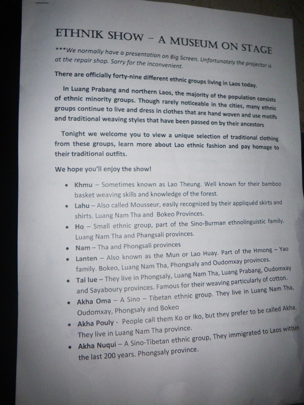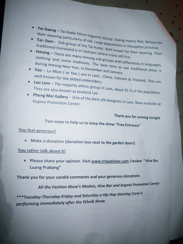 Finally, I went to a bar called Hive, which was having a fashion show. The pictures didn't come out well, but I did take pictures of the program, which gives useful information about the local ethnic groups.