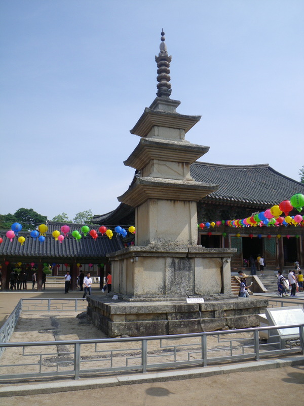 Inside the temple are two stone pagodas. The one on the left is called Dabotap, and is built in the simpler style of Shilla.
