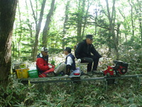 These people were actually maintaining the trail. This cog monorail probably also serves to supply instant ramen to the little shelter at the end of the line. Other than the smell of the engine, the whole setup seemed very unobjectionable.