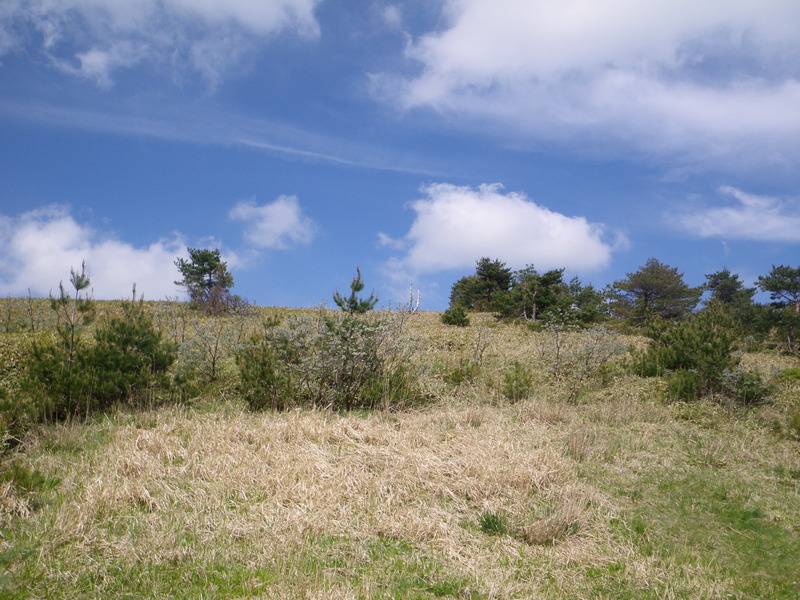 The main peak of Hallasan is surrounded by many smaller craters such as these two, Chetmang Oreum in front and Red Oreum behind it. Oreum (pronounced about as in "Oh rum") means crater in Korean.