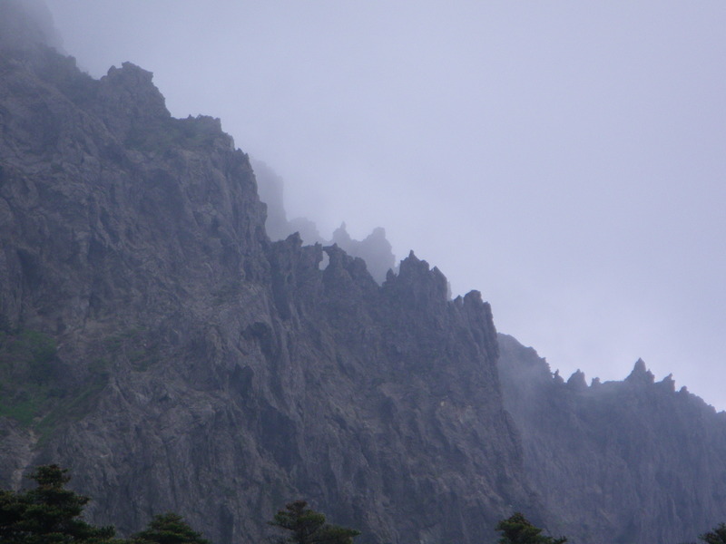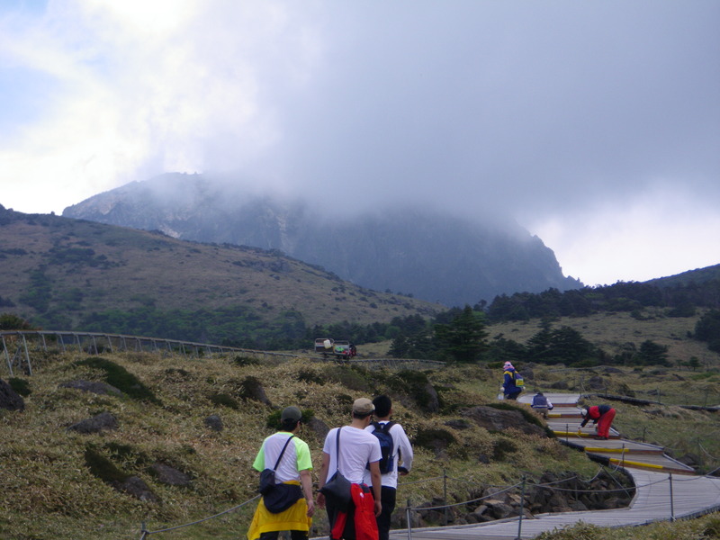 The main peak of Hallasan today was often in the clouds, and is quite steep and rocky.