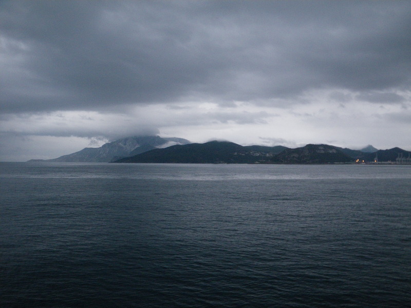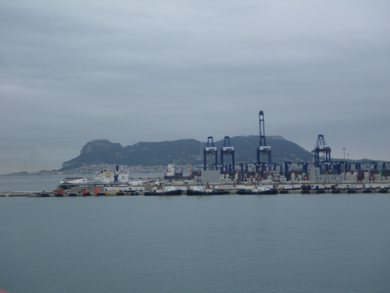 "The Rock" (Gibraltar) is visible across the gulf from Algeciras.