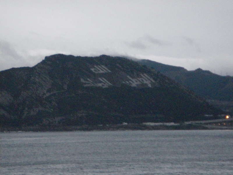 Someone wrote an inscription (in Arabic, of course) on the side of a mountain just above Tangier-Med harbor.