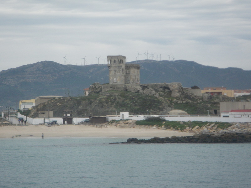 Tarifa also has some nice old towers and a fort. If you look carefully, you'll see modern windmills on the hill behind the tower.