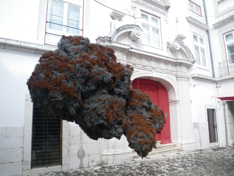 On my way up to the castle, I walked through a courtyard that exhibited an odd sculpture, made of many different steel scrub sponges, and made to resemble a huge steel scrub sponge.