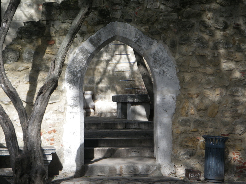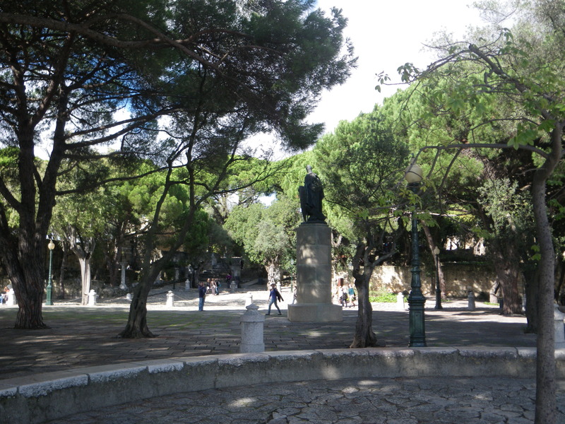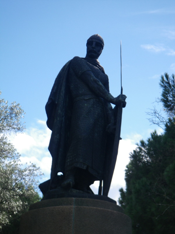 A statue in the courtyard of the castle shows a warrior such as might have conquered the castle from the Arabs.