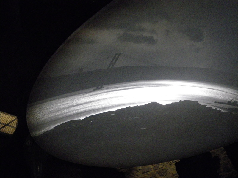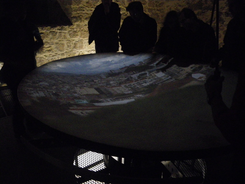 One of the towers of the castle includes a large periscope which offers 360-degree panoramic views of Lisbon. The design of this periscope was attributed to Leonardo da Vinci, though the realization is certainly much more recent (I would guess 150 years ago).