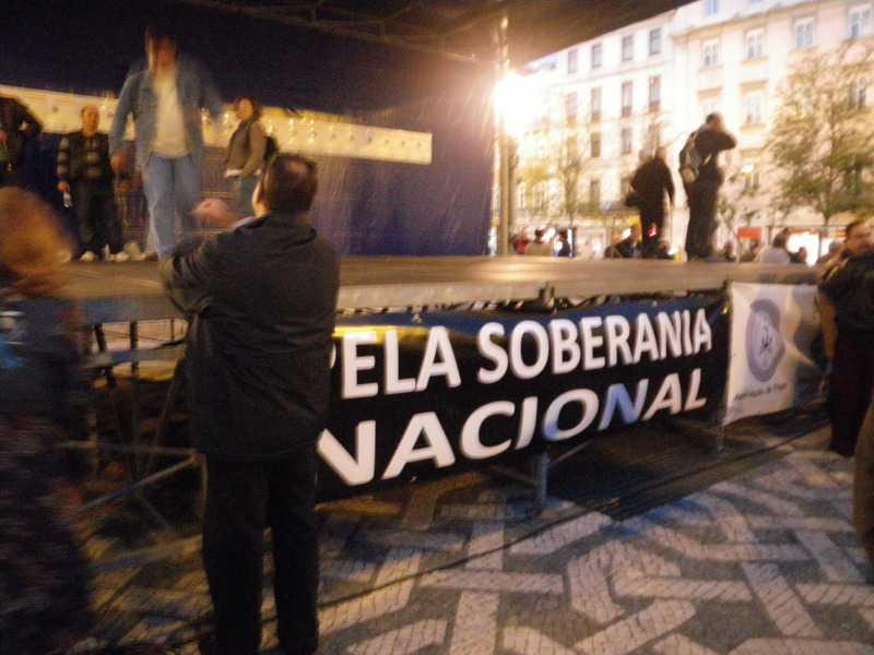 One evening I heard a lot of shouting and cheering. By the time I got to the location, near the beginning of Avenida de Libertade, the demonstration was winding down. I am not sure what it was about, but I suspect the words mean approximately "for National Sovereignty". Perhaps some protest against the European Union?