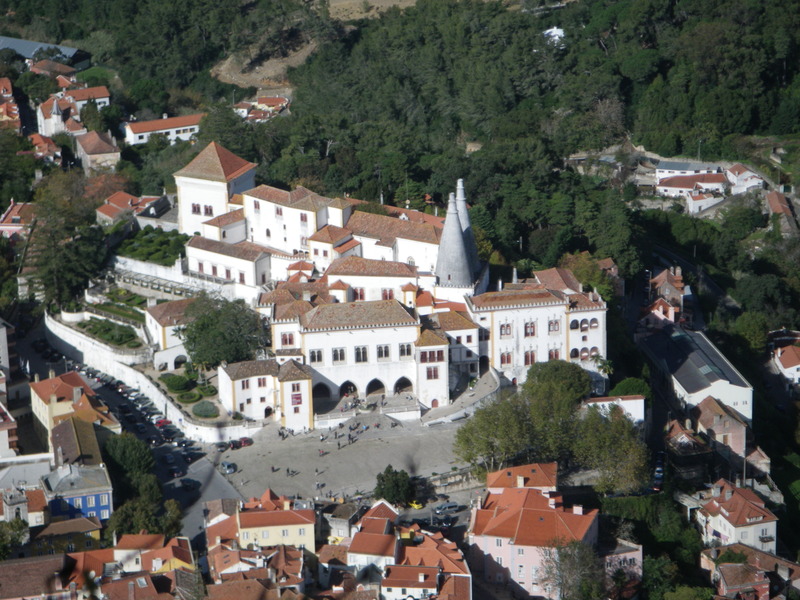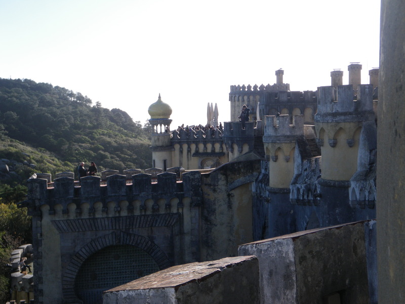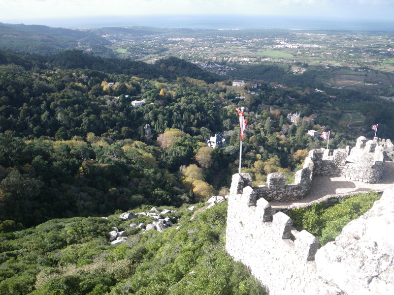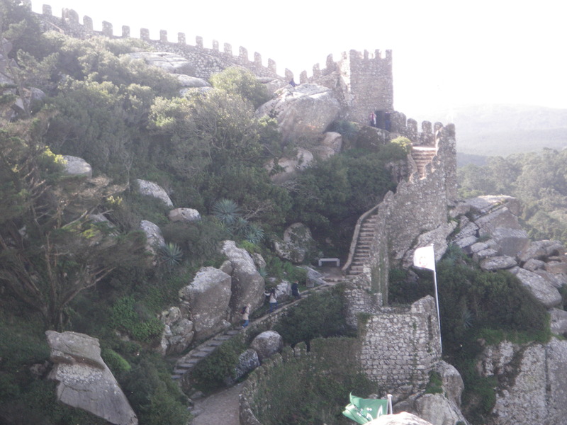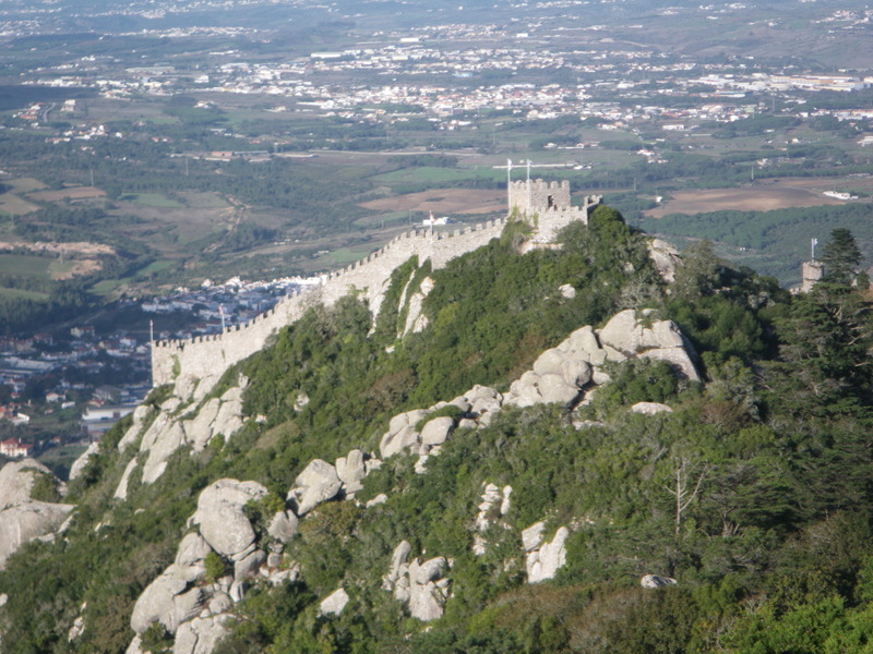 On the outskirts of Lisbon, easily reached by commuter train, lies the town of Sintra. It is a small town in the mountains overlooking the Atlantic Ocean. It boasts a large number of palaces and castles. The oldest is the Moorish castle, Castelo dos Mouros, built between the 9th and the 12th centuries.