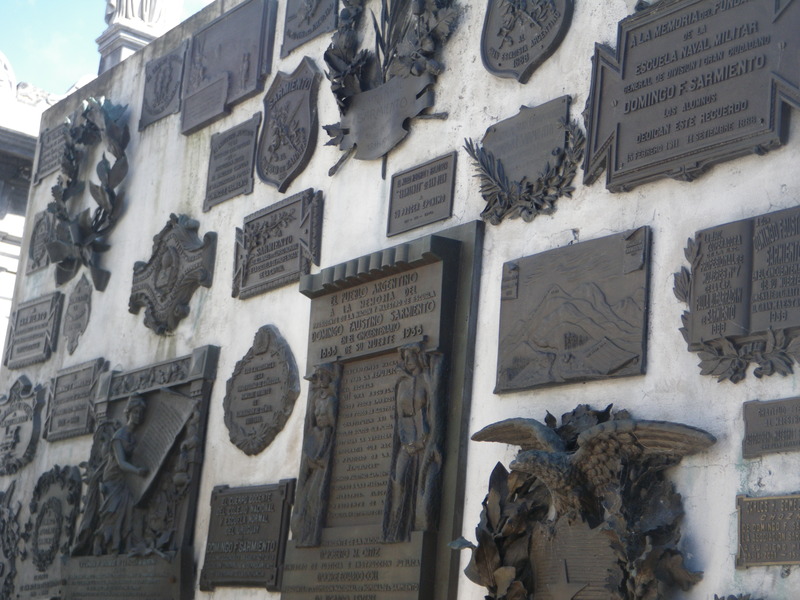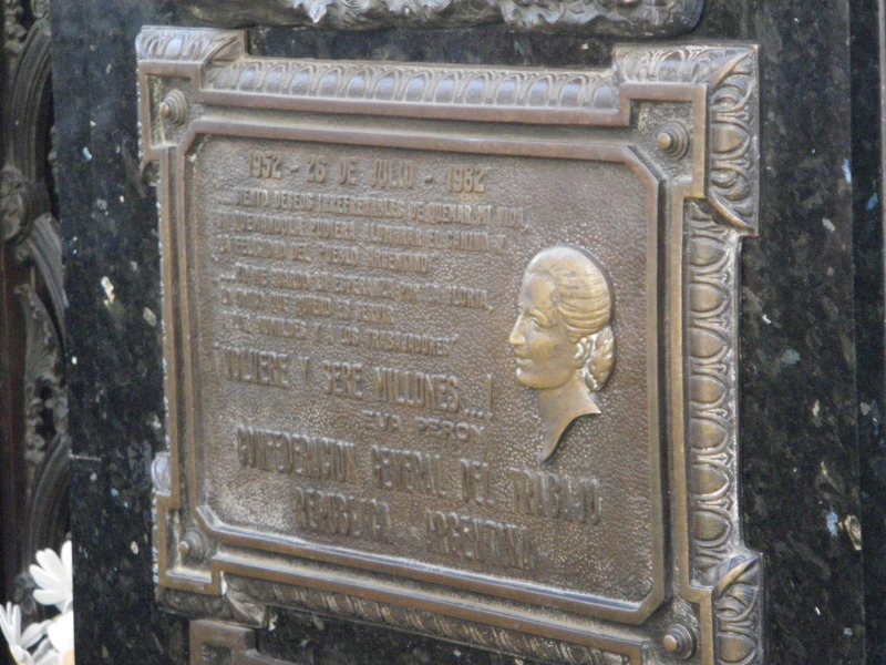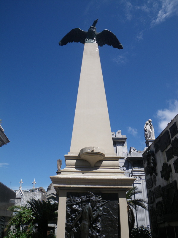 The other person I've heard of who is buried in the cemetery of Recoleta is President Sarmiento, whose tomb has a small obelisk with a condor flying over it.