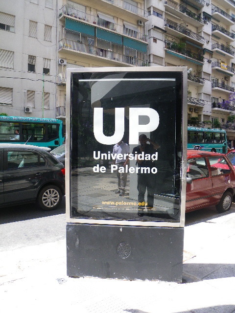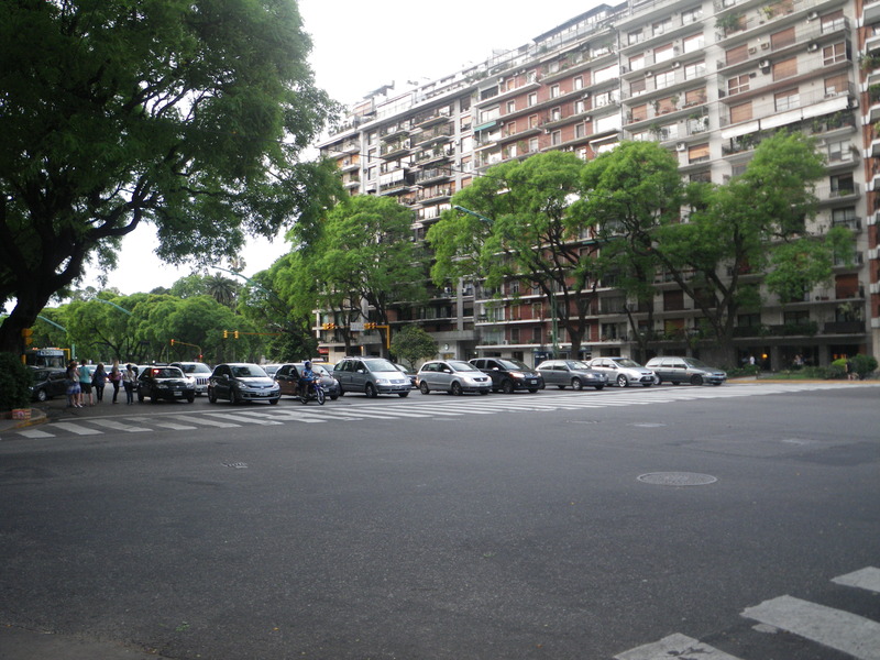 I have noticed quite a few very wide streets in Buenos Aires. The city and its surrounding metro area have more than 12 million inhabitants, so I guess the wide streets are needed to hold all the cars. I counted 13 lanes on one of the one-way streets I crossed, and this picture shows 9 cars lined up waiting for the light to change.