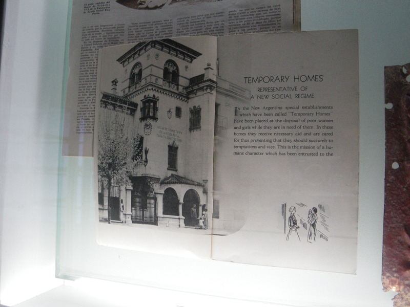 The museum is housed in a building she designated for women moving to Buenos Aires from other parts of the country who had problems of documentation, health, work, or living in Buenos Aires, so they would not "succumb to temptation and vice".