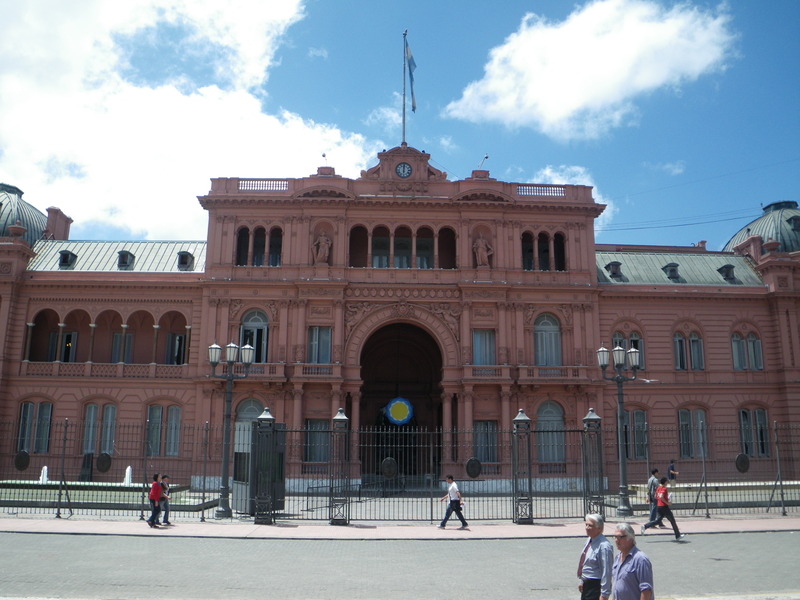 Today's Plaza de Mayo has the Cabildo at one end, and the presidential palace, the Casa Rosada, across the square.