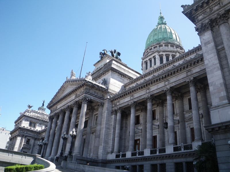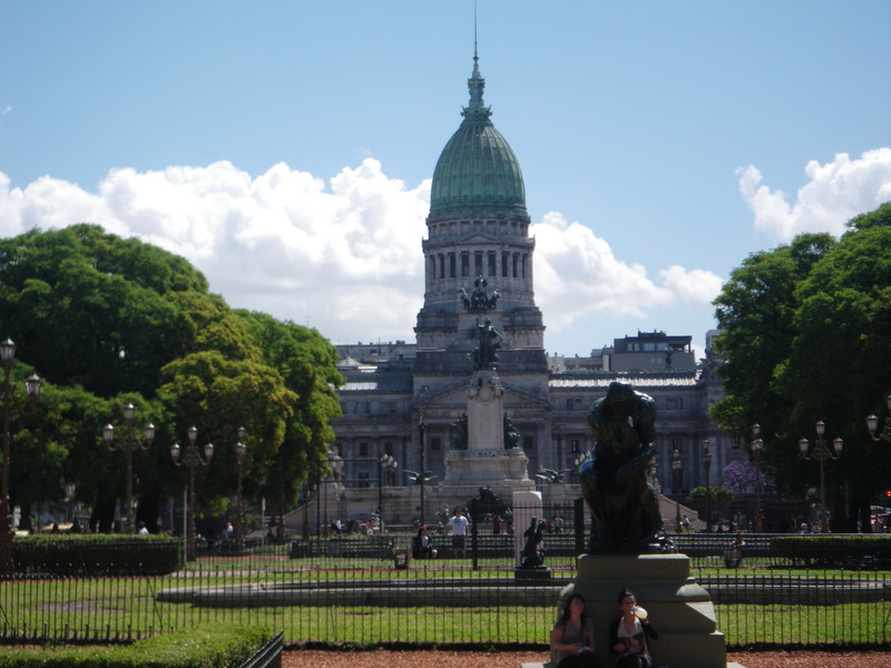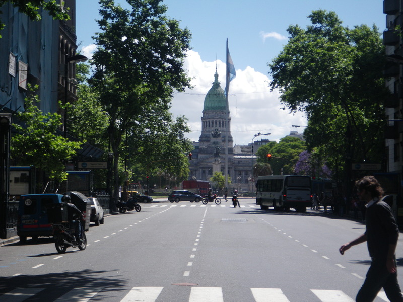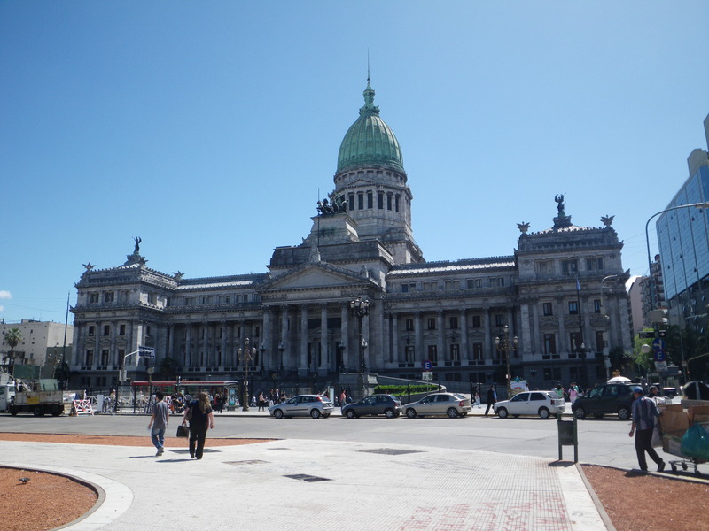 Avenida de Mayo begins in Plaza de Mayo and ends gracefully in Plaza de los Dos Congresos, in front of the congress building. This building is somewhat modeled on the building of the U.S. congress in Washington D.C.