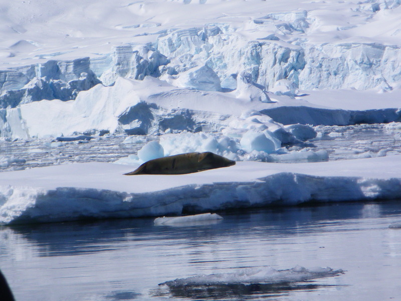 On a zodiac tour of the bay, we saw icebergs and a couple of seals. Supposedly, these are crabeater seals.