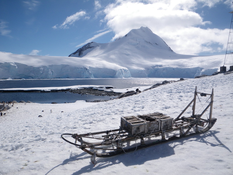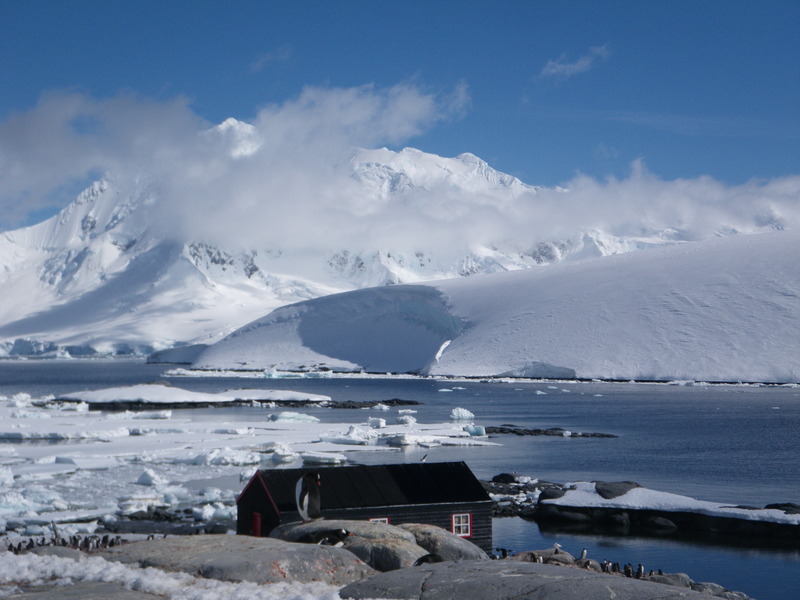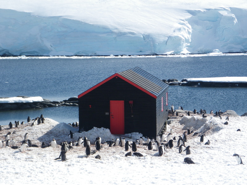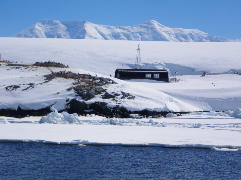There is a British antarctic base in Port Lockroy that has been made into a little museum. It is on a very small island called Goudier Island, at 64 degrees, 49' south and 63 degrees, 30' west. It was established in 1944.