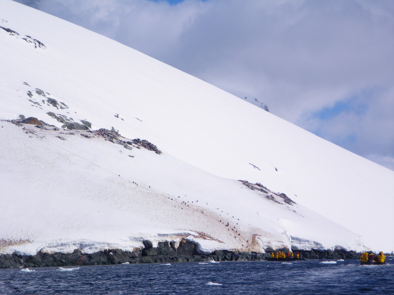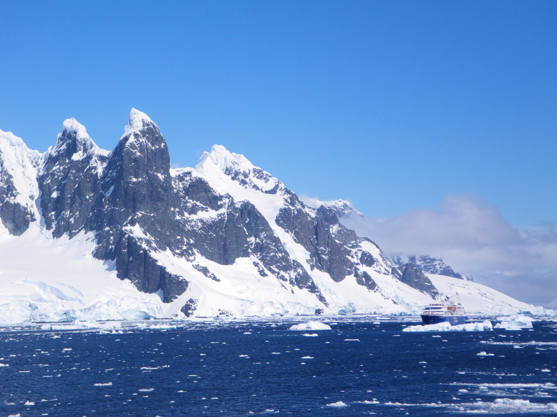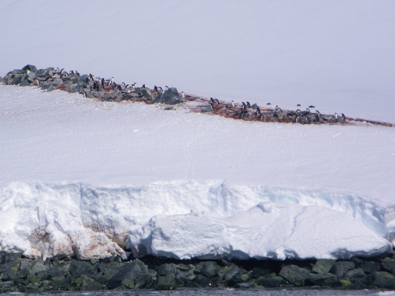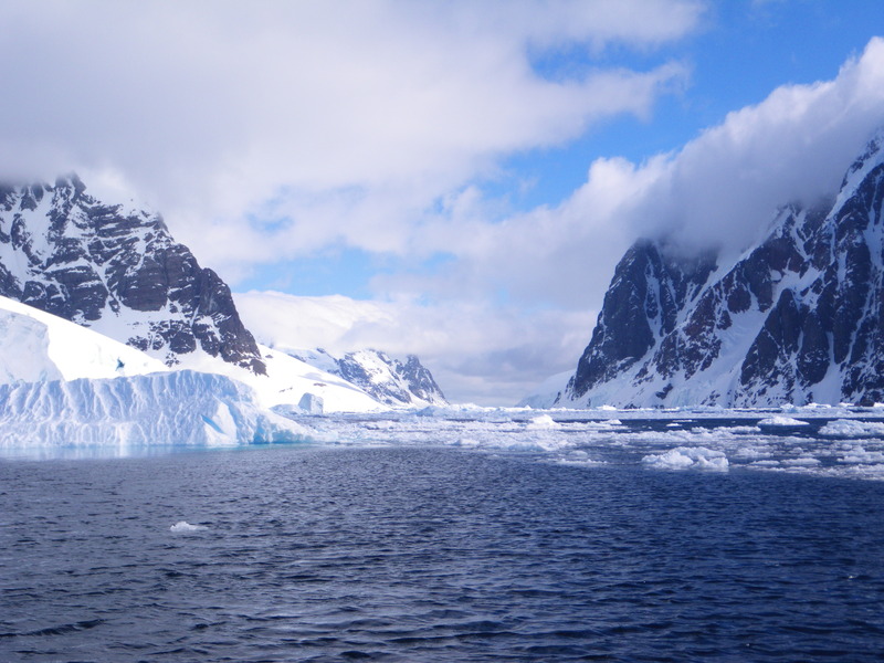 The sides of the Lemaire channel are very steep and largely covered in ice and glaciers, and host a few penguin colonies.