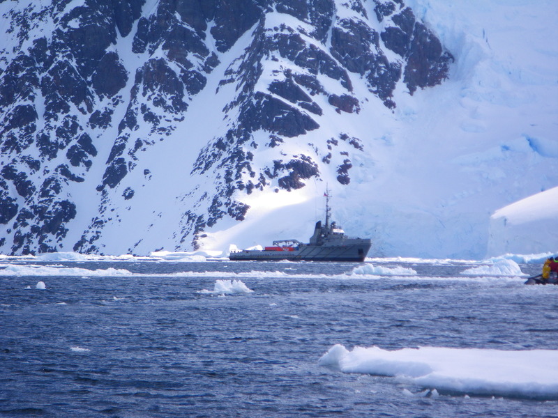 There was a lot of ice in the channel, and we did not get to go all the way across. We did see a Chilean icebreaker that had crossed the channel, probably on its way to or from supplying an antarctic base.