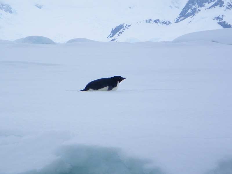 On the sea ice we saw an Adelie penguin.