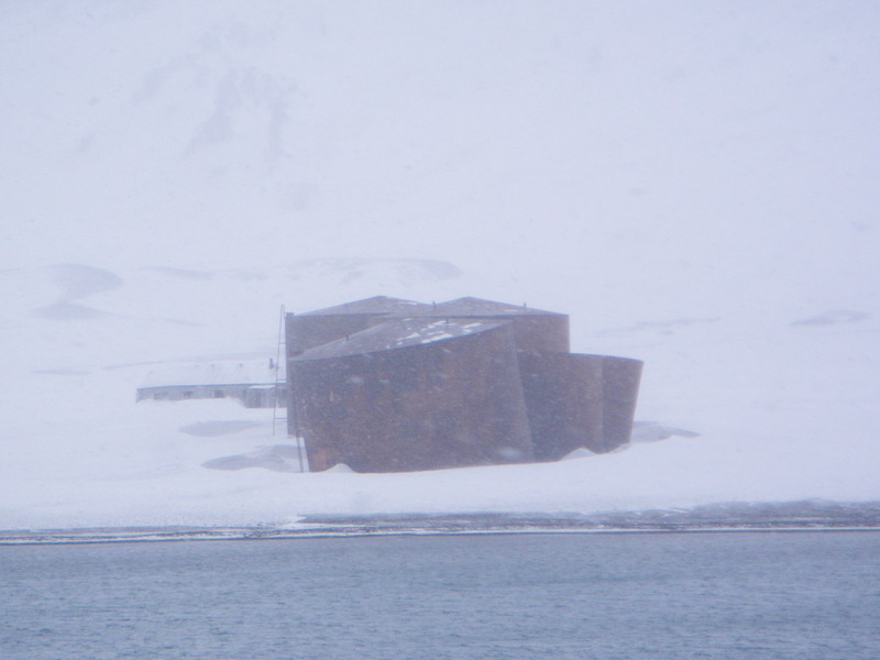 Whaler's Bay is on Deception Island. Deception island is a volcanic island with a large caldera that is flooded by the sea, forming a very sheltered harbor.